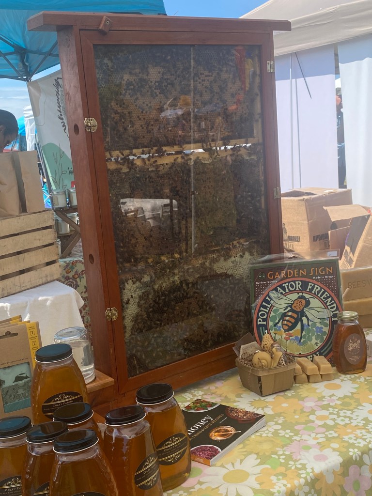 Aside from the daily speakers, there were numerous vendors set up to showcase their favorite products. I came home with things such as organic cotton kitchen towels, a windchime, a basket for collecting eggs/vegetables from the garden, and so much more! My favorite table was this one with bees! I was even able to spot the queen π
