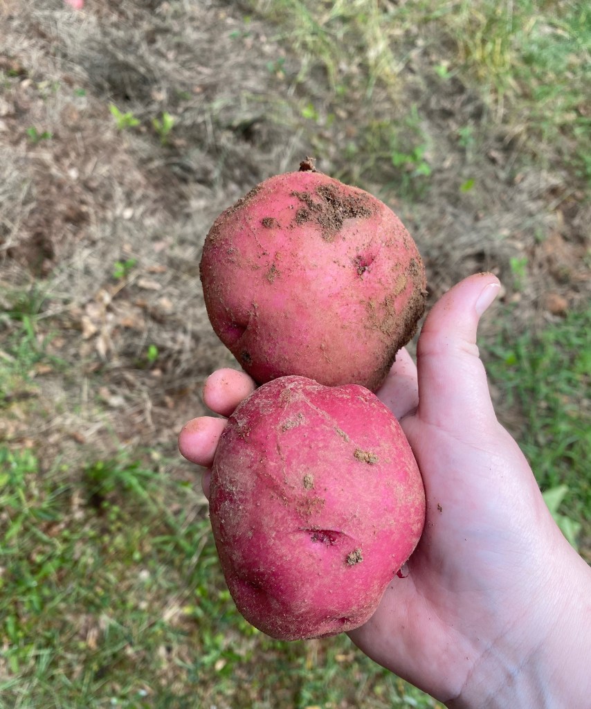 We recently harvested our potatoes and I am so impressed at our yield! Last year, we tried growing sweet potatoes in buckets. While it did work, they did not have enough room to grow large in the buckets. Most were long and thin! We had another patch that we did using a no-till method, and they were massive! We knew from that moment on that potatoes thrive better in a larger space.